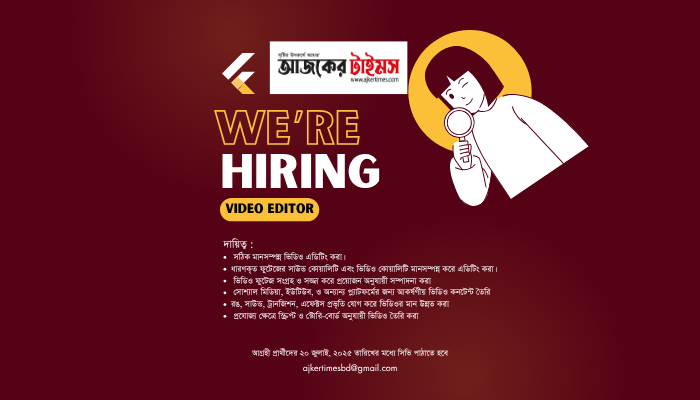 আগ্রহী প্রার্থীদের ২০ জুলাই, ২০২৫ তারিখের মধ্যে সিভি পাঠাতে হবে Ajkertimesbd@gmail.com